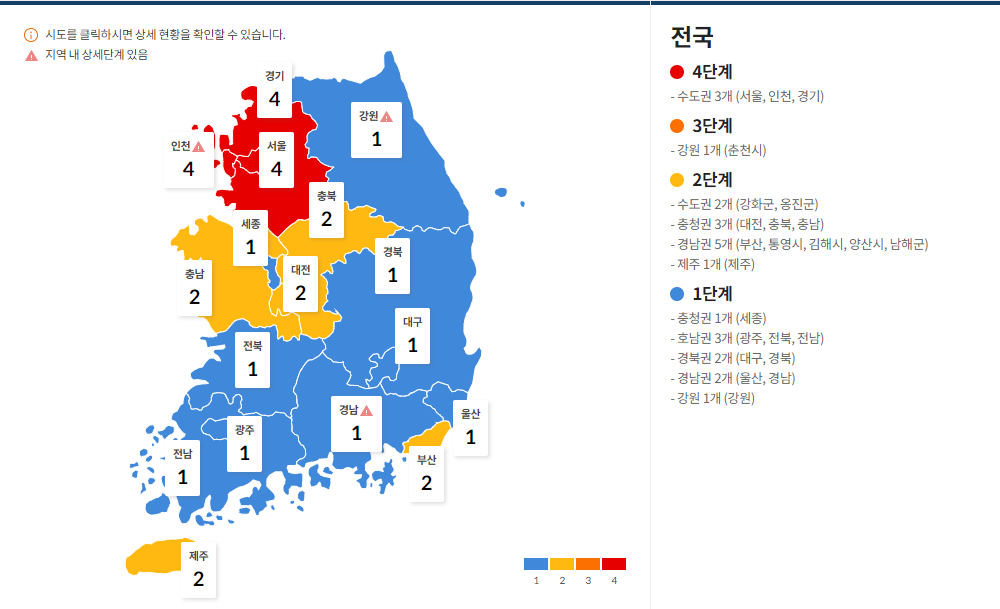 - 지역별로 거리두기 단계와 세부적인 방역 조치사항은 각 지자체에서 안내할 예정임