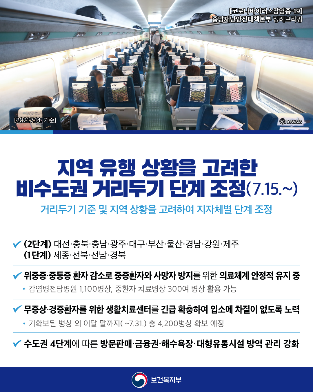 1) 비수도권은 7월 15일(목)부터 거리두기 기준 및 지역 상황을 고려하여 지자체별로 단계를 조정한다.