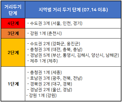 [ 지역별 거리 두기 단계 (7.14 00시 기준) ]