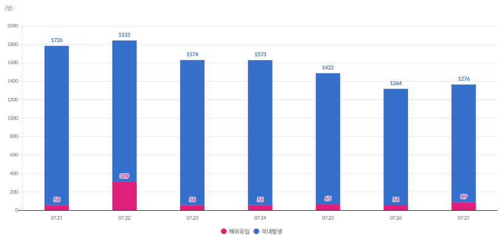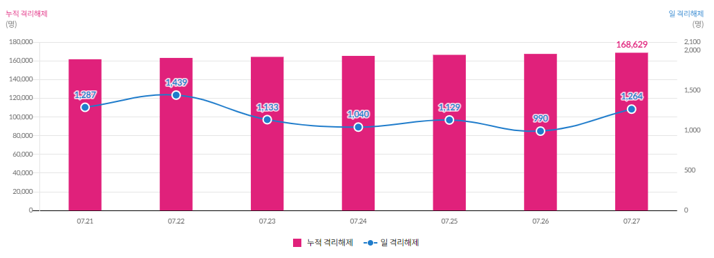 7월 27일, 중앙 방역대책본부가 발표한 자료에 따르면