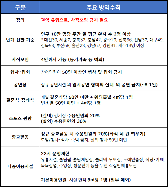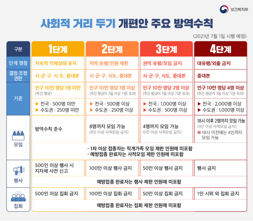 참고 : 사회적 거리두기 개편안 주요 방역수칙은 다음과 같습니다. (출처: 보건복지부 블로그)
