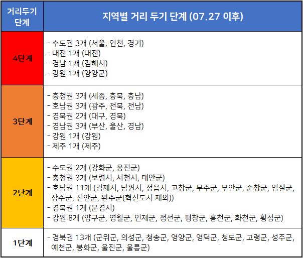 [ 지역별 거리 두기 단계 (7.27 00시 기준) ]