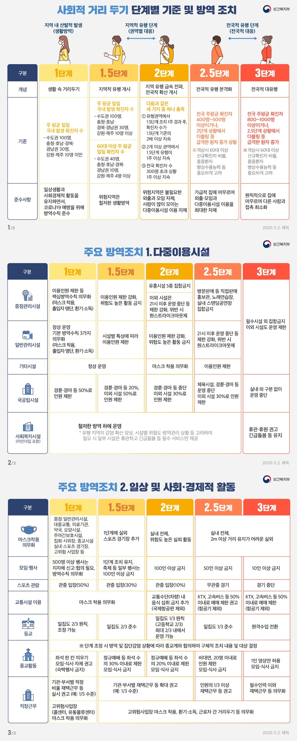 사회적 거리 두기 5단계 세부화, 단계별 기준 및 방역조치에 관한 자세한 내용은,