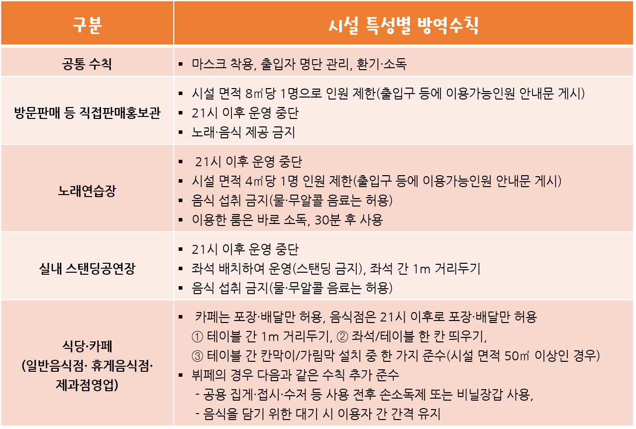 자료 출처 : [뉴스포스트 그래픽] 거리두기 5단계 업종별 적용지침_www/newspost.kr