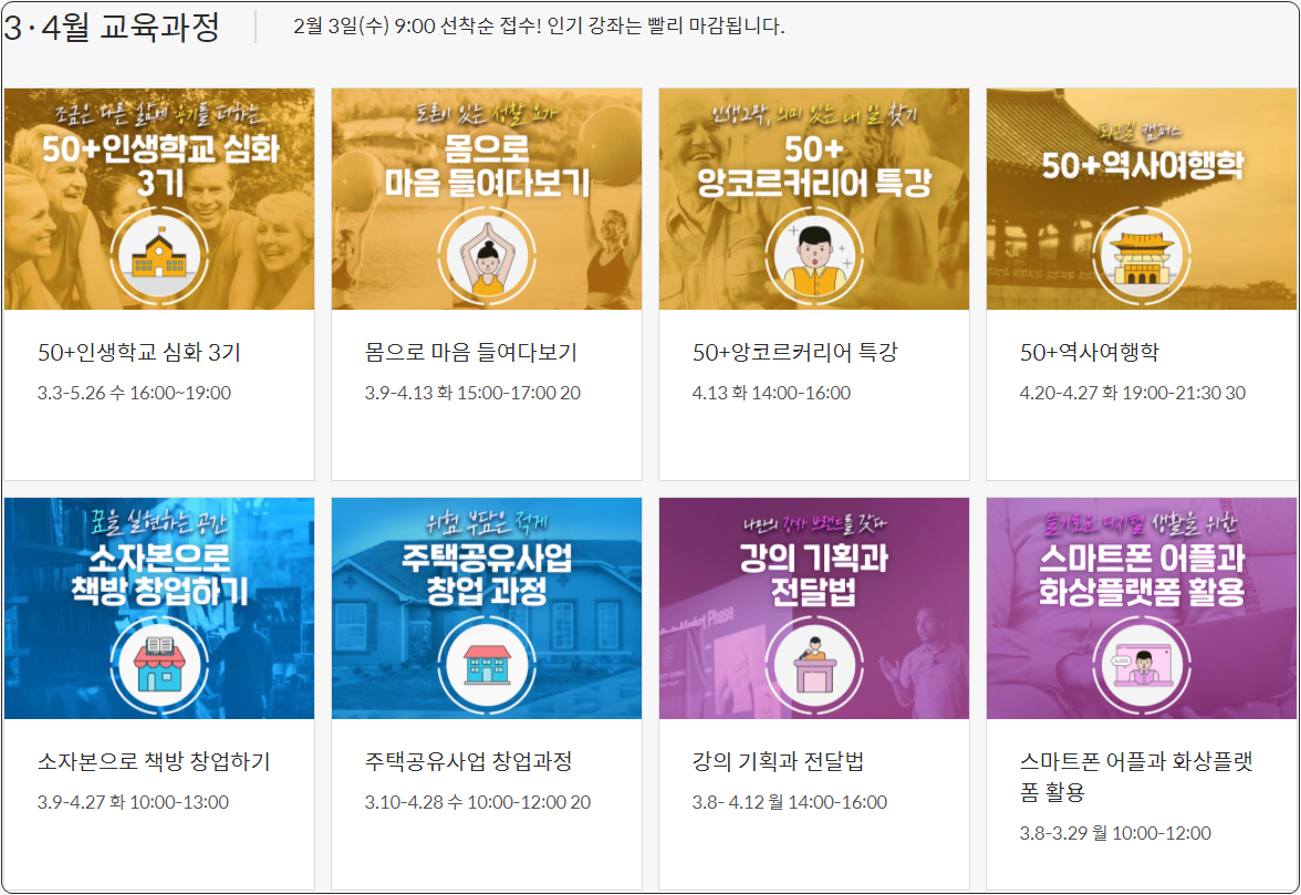 2021년 <3·4월 교육과정> 한눈에 보고 신청하세요! 인기강좌는 빨리 마감됩니다.