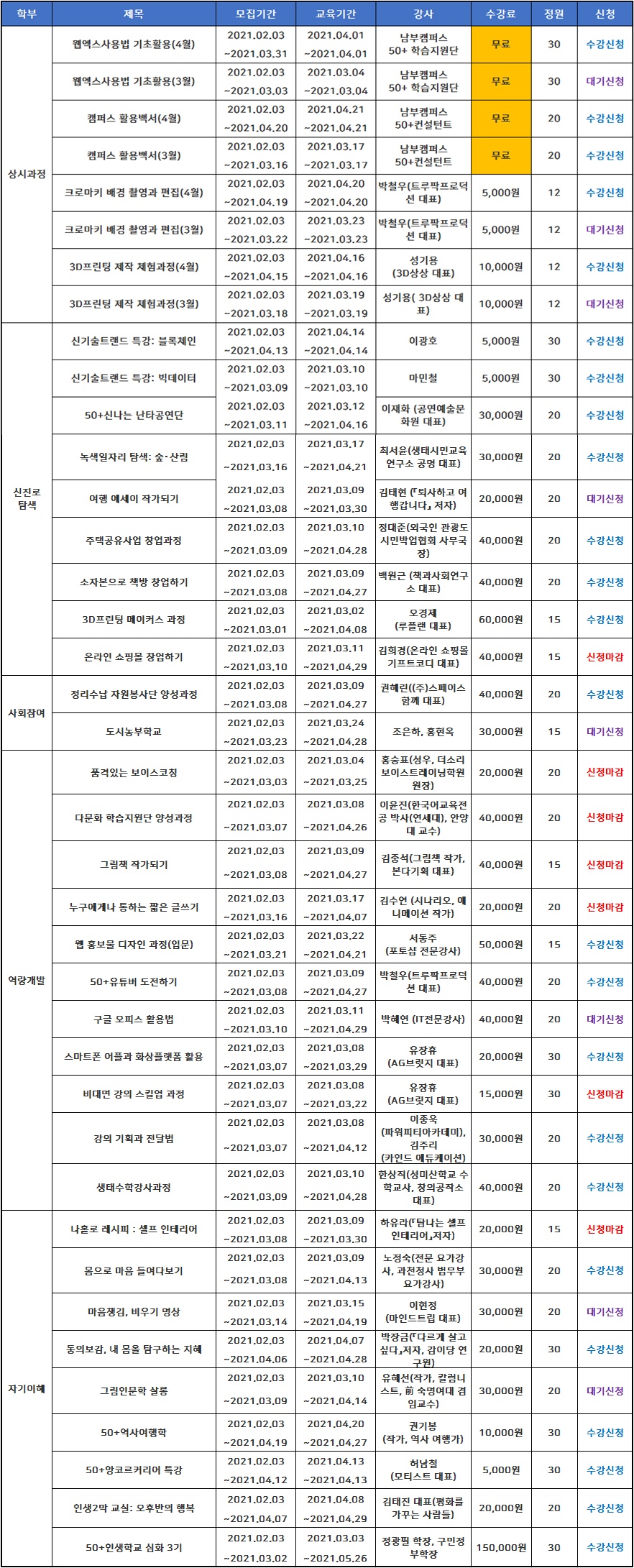 [ 남부캠퍼스 2021년 1학기(3~4월) 교육과정 안내 ]