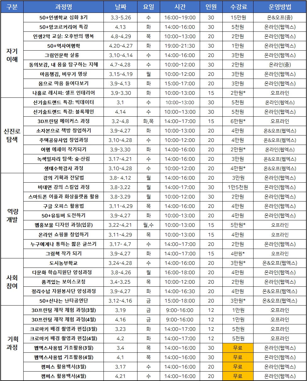 | [50플러스 교육 #4] 서울시50플러스 북부캠퍼스 교육과정(3~4월) (2) | 2021.02.19 |
