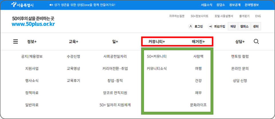[ 서울시50+ 재단 사이트: www.50plus.or.kr ]