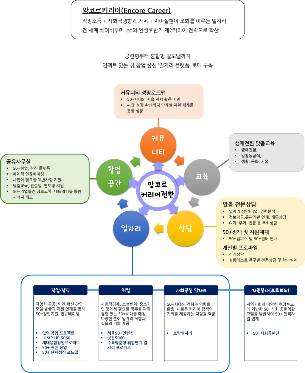● 목적 : 50+세대의 인생 재설계를 위한 창업 및 단체활동 지원